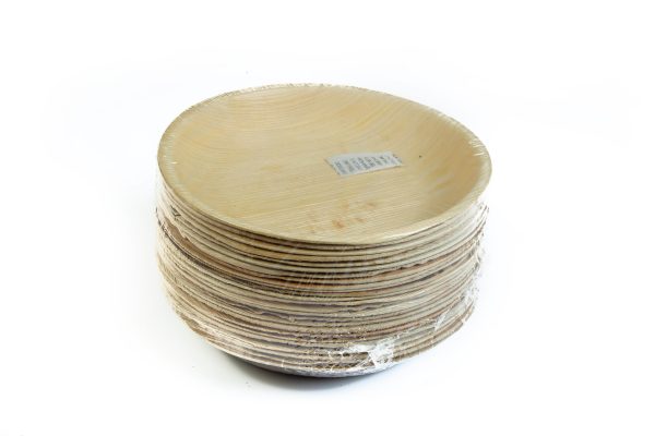 9 inch Round & ; 075 inch deep, Palm Leaf Product. Best of nature. Eco-friendly. Disposable.Packing: 25 pcs shrink wrap x 12 packs (300pcs/case), Box Size: 53 x 53 x 32cms, Box Weight: 120.05 kilo